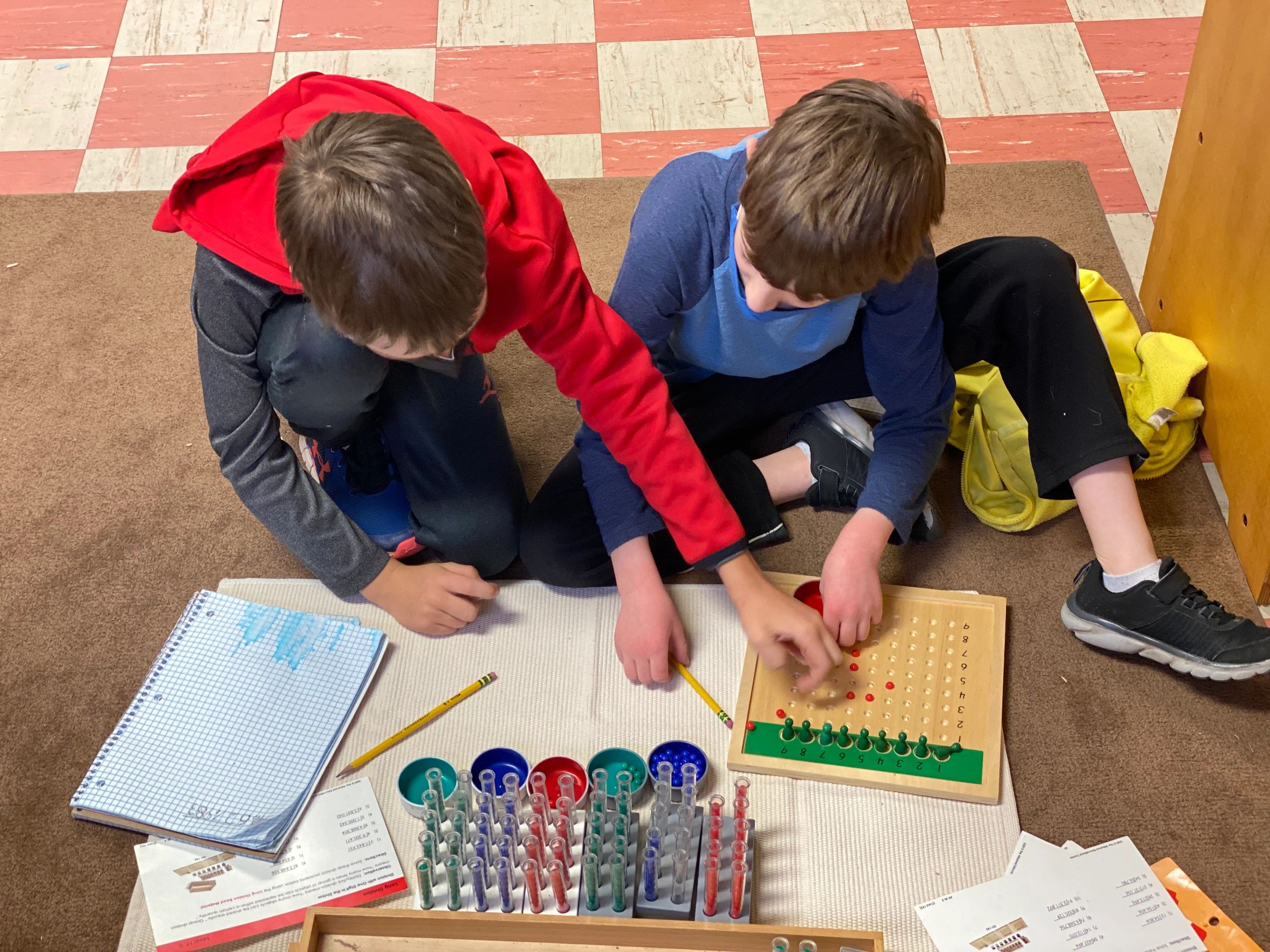 In our elementary classrooms, students are able to explore specially designed Montessori materials that are hands-on, concrete and self-correcting. Each child progresses at his or her own, individual pace, and is able to be challenged in order to reach his/her unique potential. At this level, students are able to reach abstraction with many concepts, so the materials change in a way that supports the progression from concrete to abstract learning. This stage of development is characterized by a shift from sensory exploration to intellectual independence and social responsibility. Children in this plane develop reasoning, abstract thinking, and imagination to further their understanding of the world.